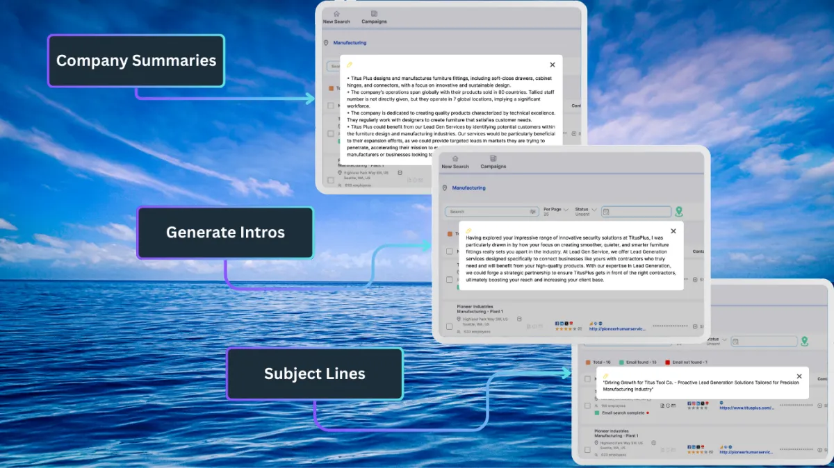 Generate company summaries in a click to know exactly what your prospect is about and how you can help their company.